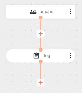 The flow uses the secure IMAP protocol (IMAPS) to connect to the Gmail server on port 993, checking the inbox every 60 seconds (delay=60000). It fetches only unread emails (unseen=true) using the provided credentials (username and password).