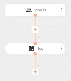The flow uses the secure POP3 protocol (POP3S) to check the Gmail inbox every 60 seconds (delay=60000), fetching only unread emails (unseen=true).