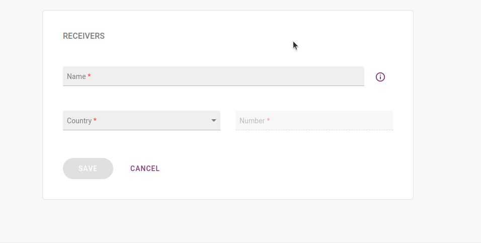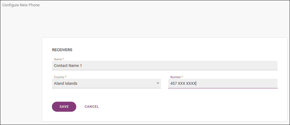 To set up a new phone number, click the (Add) button. A new window will appear, where you need to fill in the fields with the contact's name, country, and number. When an activation message is sent, the contact's status will change to pending until the invitation to receive Flexible Actions notifications is accepted.